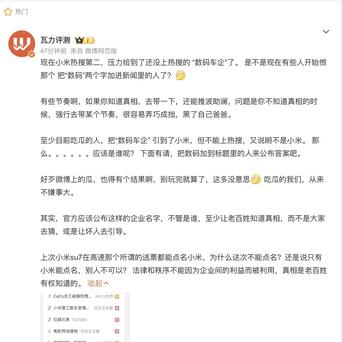 事情到了这,也没什么稀奇的,“害群之马”被整治,对中国汽车行业发展是好事。但这件事情还没完,被体道的“汽车品牌”,被知情人士爆料是“数码汽车品牌”。这个消息一出,就引发了网友的热议,不少黑子跳出来开始带节奏了,称这个“数码汽车品牌”就是小米。